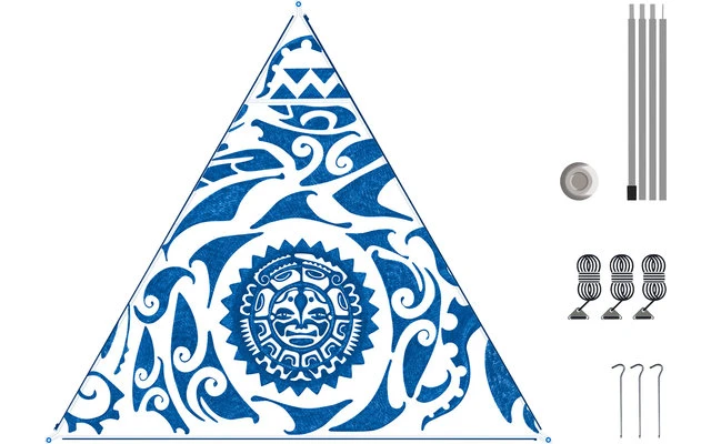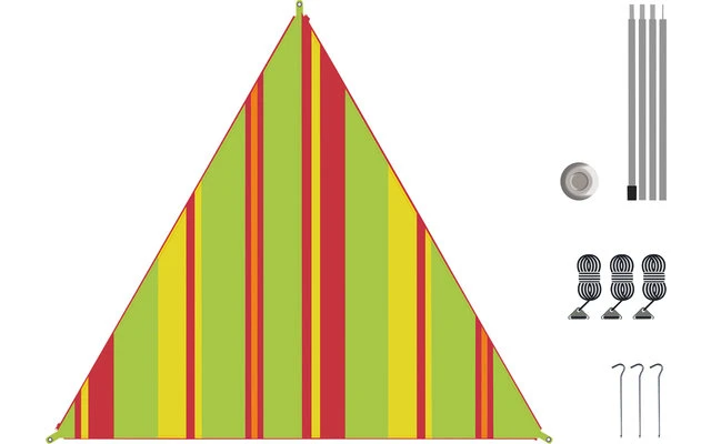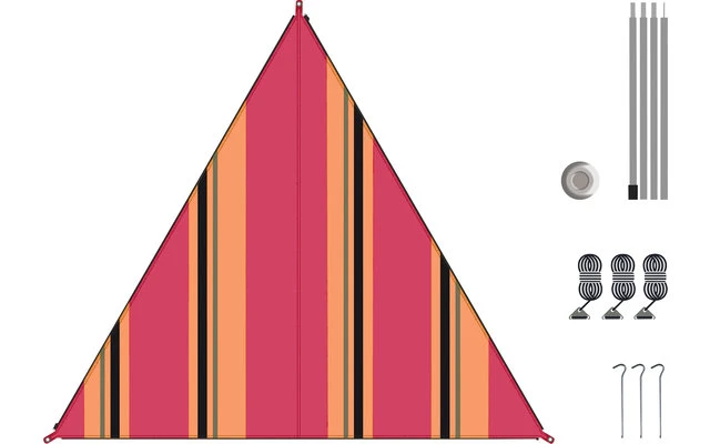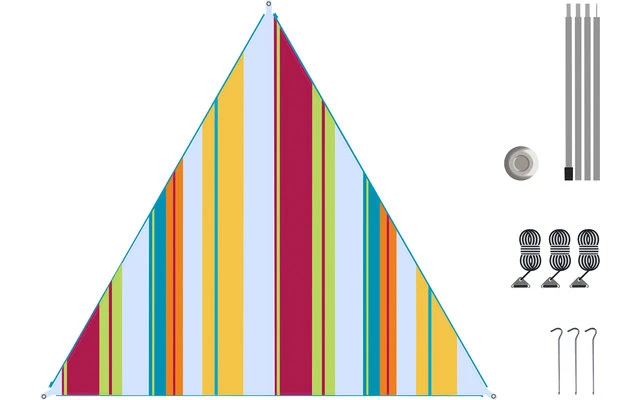 Lieferung inkl. 3 Heringen, 3 Abspannseilen inkl. Alu Stopper, 4-teilige Stahl Aufstellstange 180 cm x 19 mm inkl. Kunststoff Teller.