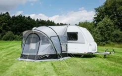 Das Moskitowandset für das Reisevorzelt Sirmione Air bietet optimalen Schutz gegen Insekten und Schmutz, ermöglicht jedoch zugleich ein angenehmes Raumklima und zusätzlich zur Luftzirkulation, ist gleichzeitig noch etwas Privatsphäre möglich. Die Befestigung erfolgt schnell und einfach per Reisverschluss am Zelt.