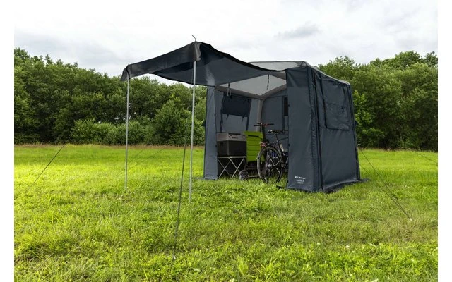 Multifunktional einsetzbares Premium-Universalzelt mit Lufttechnologie und komfortabler Stehhöhe. Das Positano-L 4 Season bietet viel Platz zum Aufbewahren von Fahrrädern, Campingutensilien, Spielsachen, Gartengeräten uvm. Dank Luftgestänge lässt es sich schnell und unkompliziert aufbauen. Das wetterfeste PVC Material inkl. UV-Schutz-Beschichtung ermöglicht einen ganzjährigen Einsatz. Drei Fenster (halb/ganz hochrollbar) inkl. Moskitogaze sorgen für optimale Ventilation. Zwei Eingänge (hochrollbar) ermöglichen einen leichten Zugang. Zum optimalen Schutz lässt sich das Universalzelt komplett blickdicht verschließen.