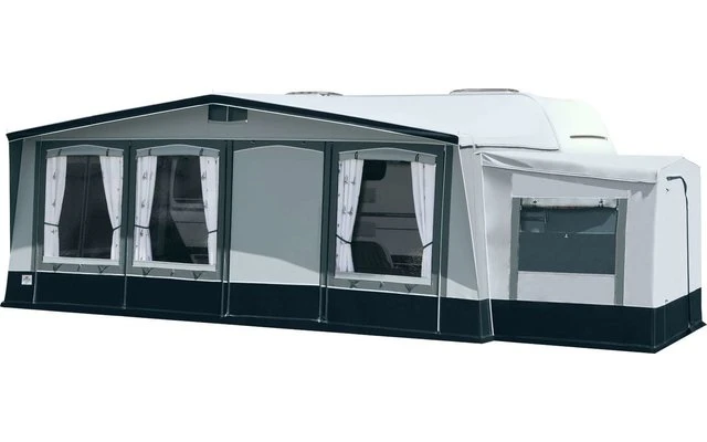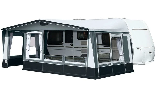 Bei diesem Saison- Vorzeltmodell kommt das atmungsaktive „Ten Cate“ – Gewebe zum Einsatz. Das Top-Modell für den Saisoneinsatz. Frei wählbare Eingangspositionen durch die Elementtechnik der Vorderwand. Für die Seitenwände gibt es insgesamt vier Fensterelemente: zwei Folienfenster und zwei Lüftungsfenster. Diese vier Elemente können nach Wunsch positioniert werden. Auch ein Türelement (lieferbar gegen Mehrpreis) kann in den Seitenwänden variabel eingesetzt werden. Fensterklappen, Wetterschutzabdeckung der Reißverschlüsse, eine verschließbare Hochentlüftung und ein 28mm Stahlrohrgestänge mit PowerGrip und Vordachverstärkung komplettieren die umfangreiche Serienausstattung.