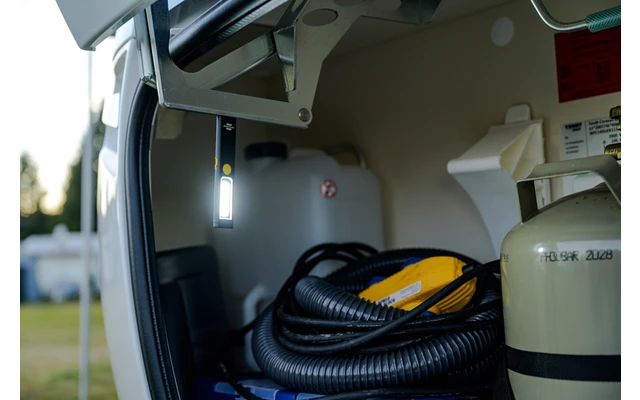 - Die Inspektionsleuchte mit COB LED und USB Port kann dank praktischem Clip z. B. an Taschen oder Gürtel angebracht werden, zudem lässt sie sich dank Magnet im Fuß an Metalloberflächen anbringen