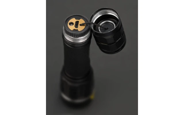 Die LED Taschenlampe mit hochwertiger Fokusfunktion und einer hohen Lichtleistung bietet durch ihre CREE-LED extrem helles Licht, welches durch einen Schalter mit Soft-Touch Funktion bequem einzustellen ist (100 % – 40 % – 10 % – SOS). Dank des stufenlosen Fokus lässt sich das flächige Nahlicht zu einem fokussierten Fernlicht umwandeln. Die robuste Taschenlampe mit integriertem Li-Ion-Akku (3,7 V/2,6 Ah und integrierter Ladeanzeige) ist dank der Schutzart IP67 staub- und wasserdicht.