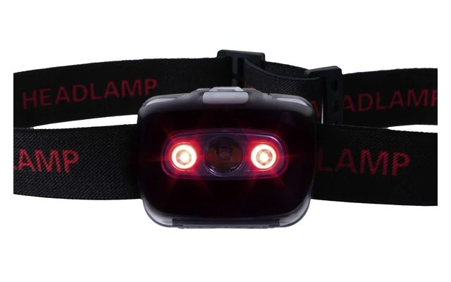 Die seitlichen roten LEDs können sowohl permanent wie auch im SOS- oder Stroboskopmodus betrieben werden. Ausgestattet mit einem leicht einstellbaren Stirnband und verstellbarem Neigungswinkel des Lampenkopfs bis zu 45°.
