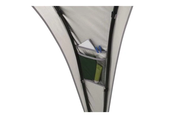Die Outwell Summer Lounge XL bietet einen vielseitig nutzbaren, frei stehenden Unterschlupf. Die äußerst robuste und stabile Konstruktion zeichnet sich durch große Zugänge und eine bequeme Stehhöhe aus. Dank der Belüftungsöffnung an der Spitze, dem Aufhängepunkt für eine Laterne in der Mitte sowie zwei Netztaschen bietet die Lounge ein Höchstmaß an praktischer Flexibilität. Der verwendete Stoff Outtex 1500 Select Silver bietet einen UV Schutzfaktor von über 50. Um einen größeren geschützten Aufenthaltsbereich zu schaffen, können miteinander kompatible Schutzdächer über eine Regenrinne verbunden werden.
